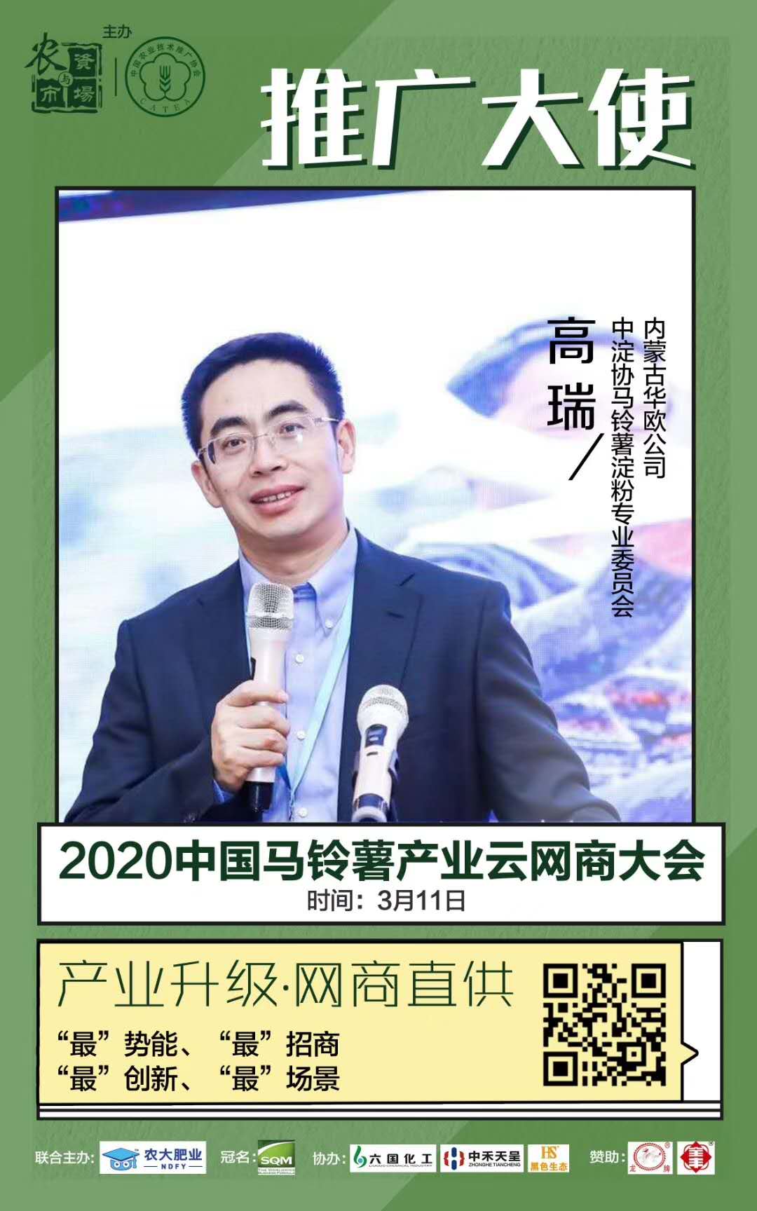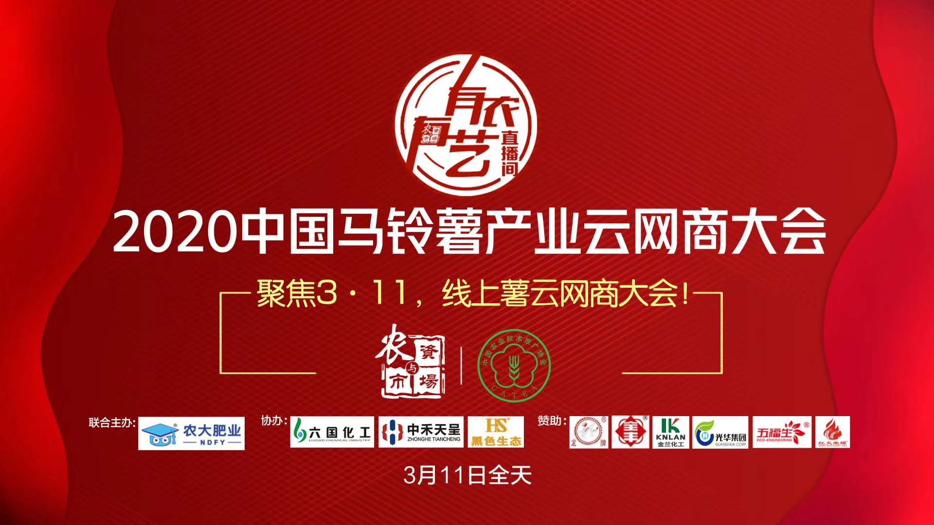 2020中國馬鈴薯產(chǎn)業(yè)云網(wǎng)商大會定于3月11日舉辦,會議由《農(nóng)資與市場》傳媒主辦,華歐公司參與協(xié)辦。